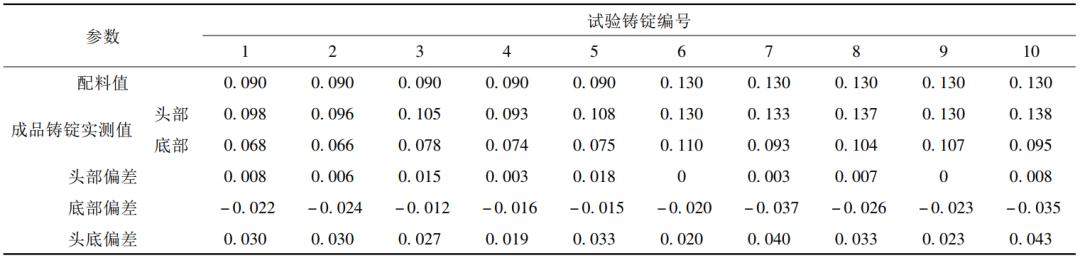 兩組鑄錠頭底氧含量偏差對比